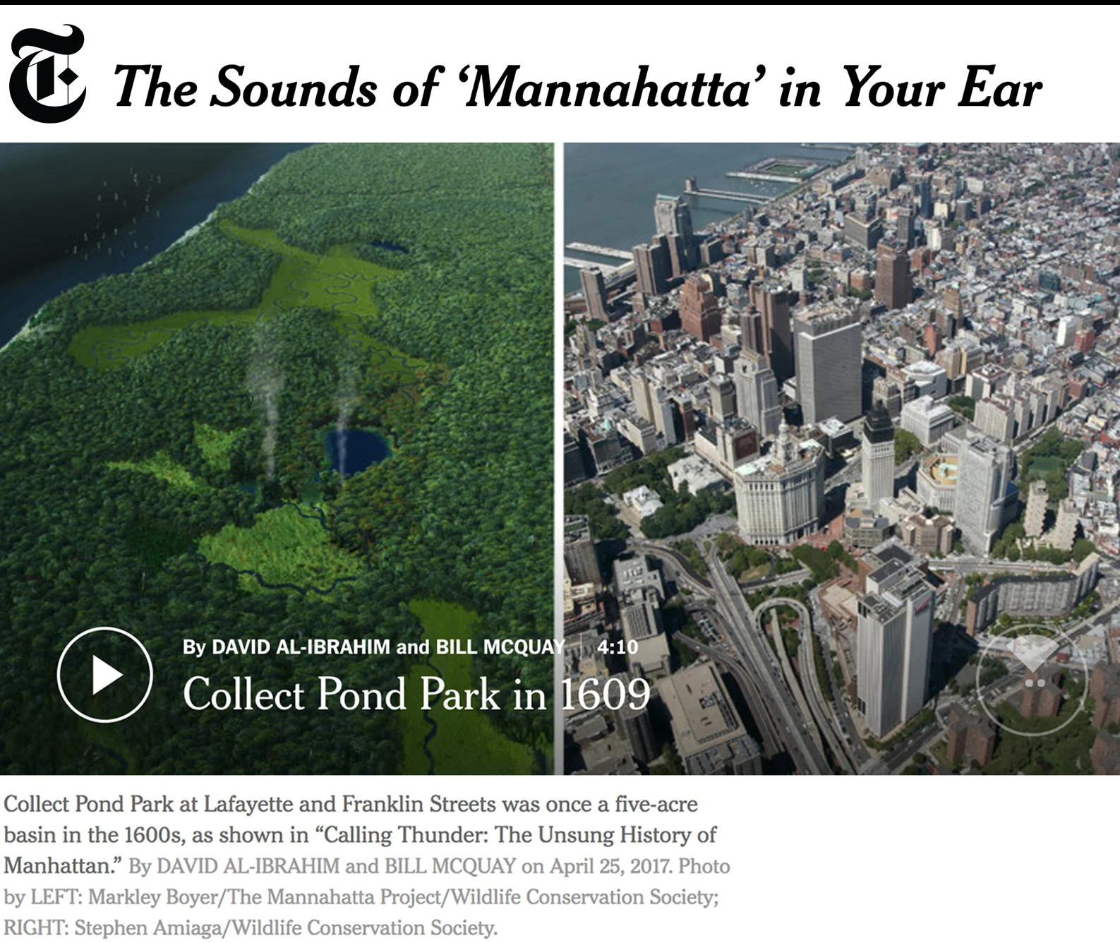 Calling Thunder explores the unsung history of New York through spatial audio and mobile VR. Users are transported through a series of interactive soundscapes that compare today’s urban cacophony to the vibrant ecosystems Henry Hudson would have encountered in 1609.